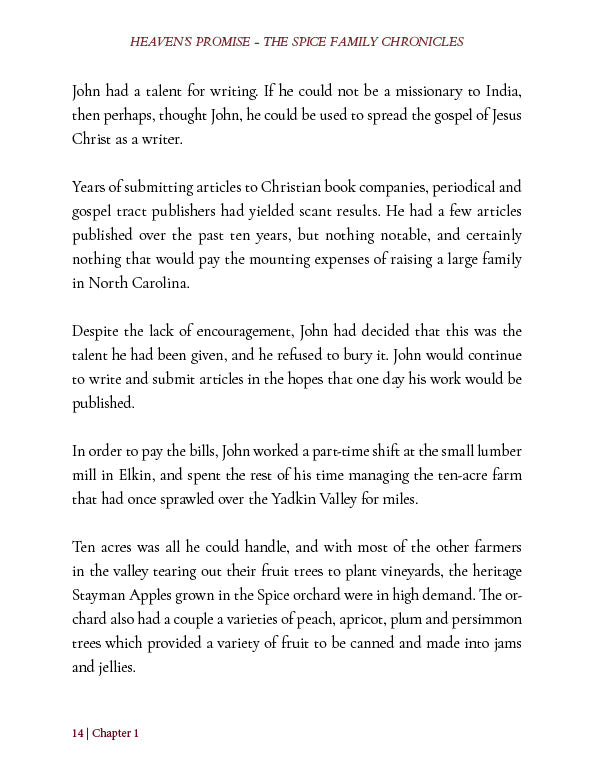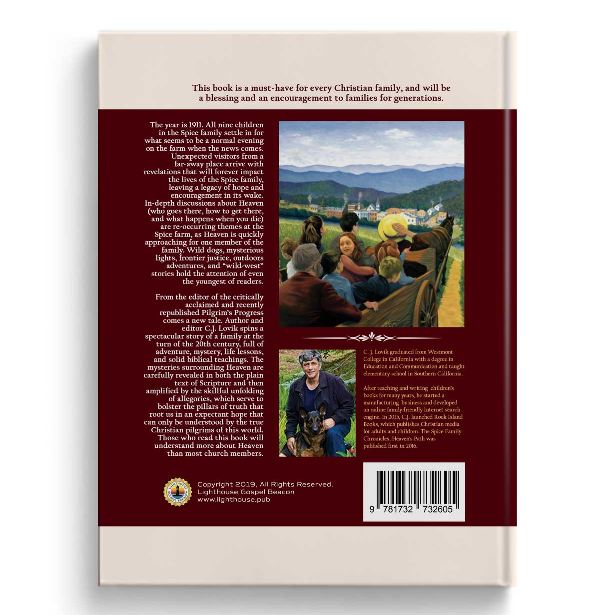 Now with full color illustrations! The year is 1911. All nine children in the Spice family settle in for what seems to be a normal evening on the farm when the news comes. Unexpected visitors from a far-away place arrive with revelations that will forever impact the lives of the Spice family, leaving a legacy of hope and encouragement in its wake. In-depth discussions about Heaven (who goes there, how to get there, and what happens when you die) are re-occurring themes at the Spice farm, as Heaven is quickly approaching for one member of the family. Wild dogs, mysterious lights, frontier justice, outdoors adventures, and “wild-west” stories hold the attention of even the youngest of readers. From the editor of the critically acclaimed and recently republished Pilgrim’s Progress comes a new tale. Author and editor C.J. Lovik spins a spectacular story of a family at the turn of the 20th century, full of adventure, mystery, life lessons, and solid biblical teachings. The mysteries surrounding Heaven are carefully revealed in both the plain text of Scripture and then amplified by the skillful unfolding of allegories, which serve to bolster the pillars of truth that root us in an expectant hope that can only be understood by the true Christian pilgrims of this world. Those who read this book will understand more about Heaven than most church members. This book is a must-have for every Christian family, and will be a blessing and an encouragement to families for generations.